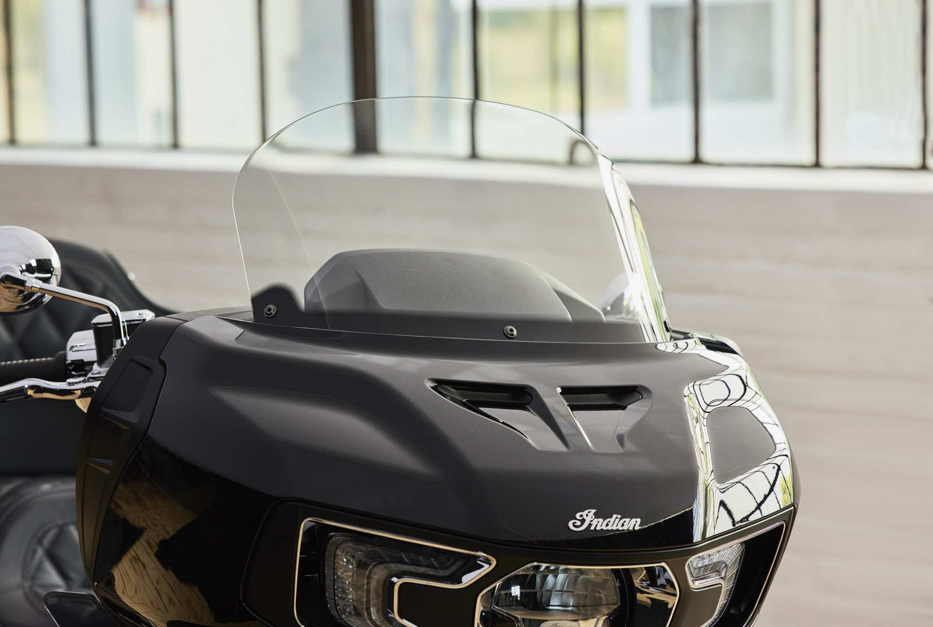 Kapotáž sama o sobě poskytuje výjimečnou ochranu proti větru. Pro vyšší komfort si nastavte větrací otvory v bočních deflektorech nebo jednoduše stisknutím tlačítka posuňte větrný štít nahoru. Jezdec i spolujezdec mohou využít vyhřívané sedadlo s prémiovým designem. Nastavte si ho podle svých preferencí pomocí ovládacích prvků na sedadle nebo na obrazovce infotainmentu.